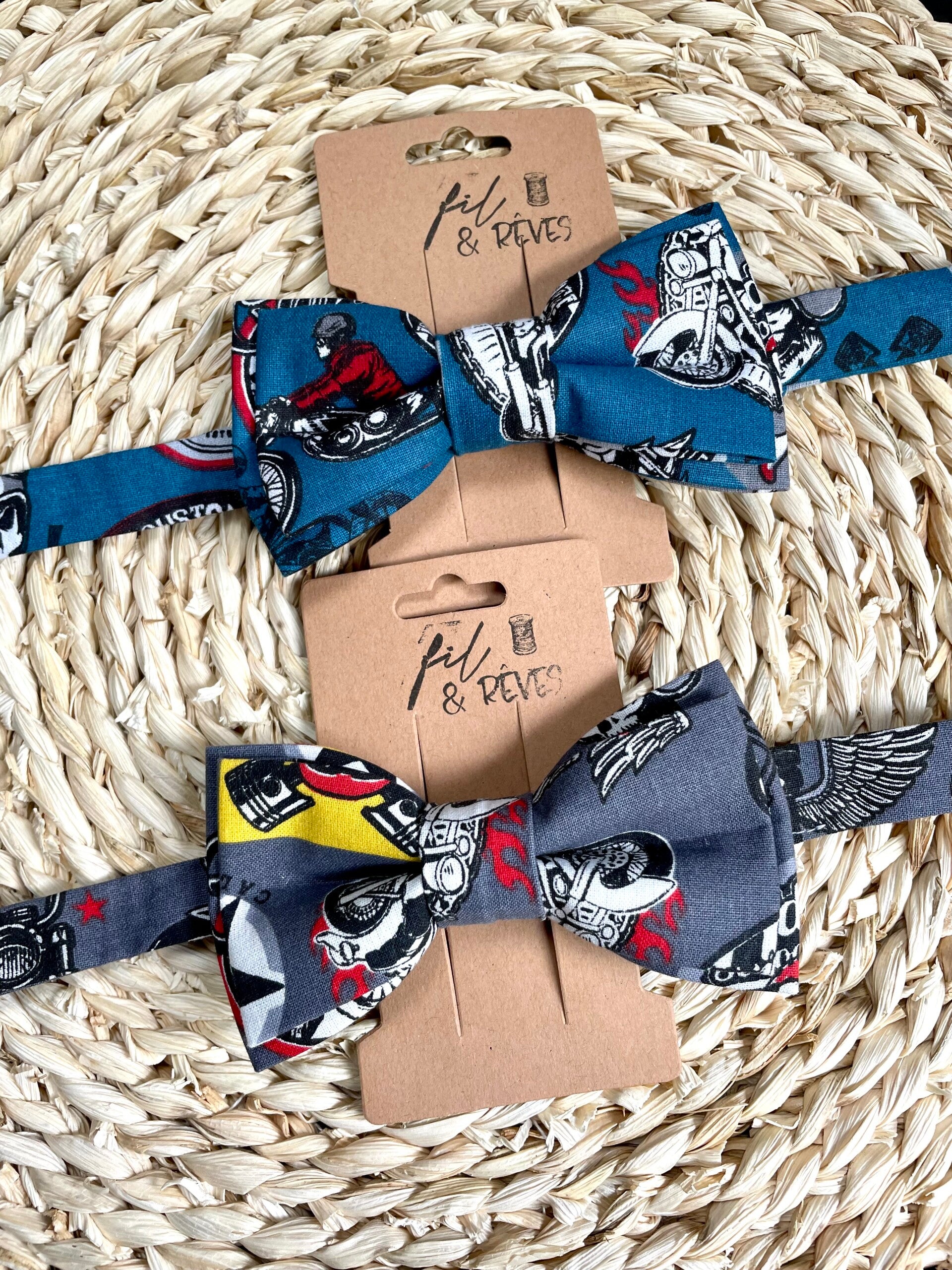 Noeud papillon réglable en tissu 100% coton, attache en métal.