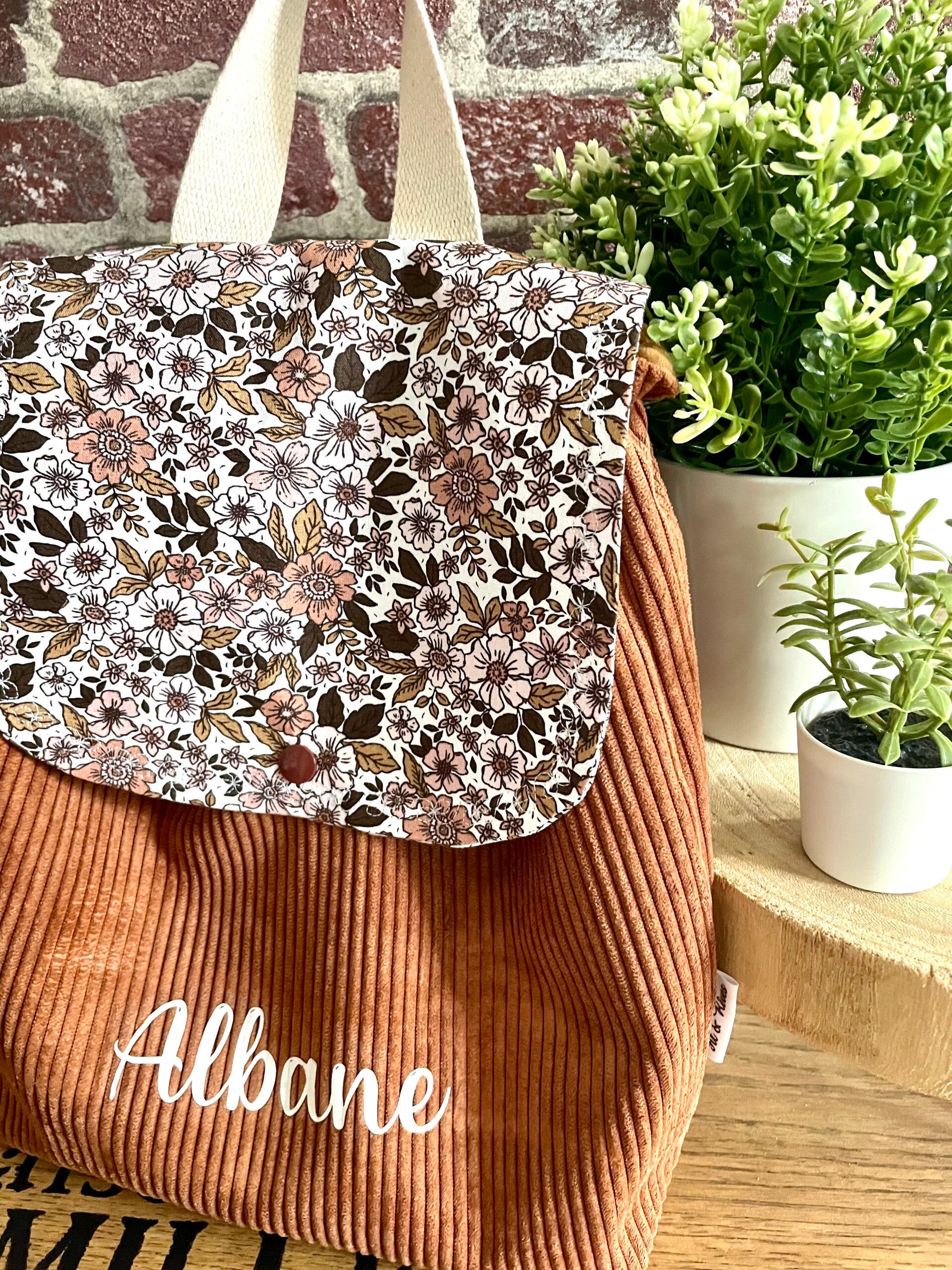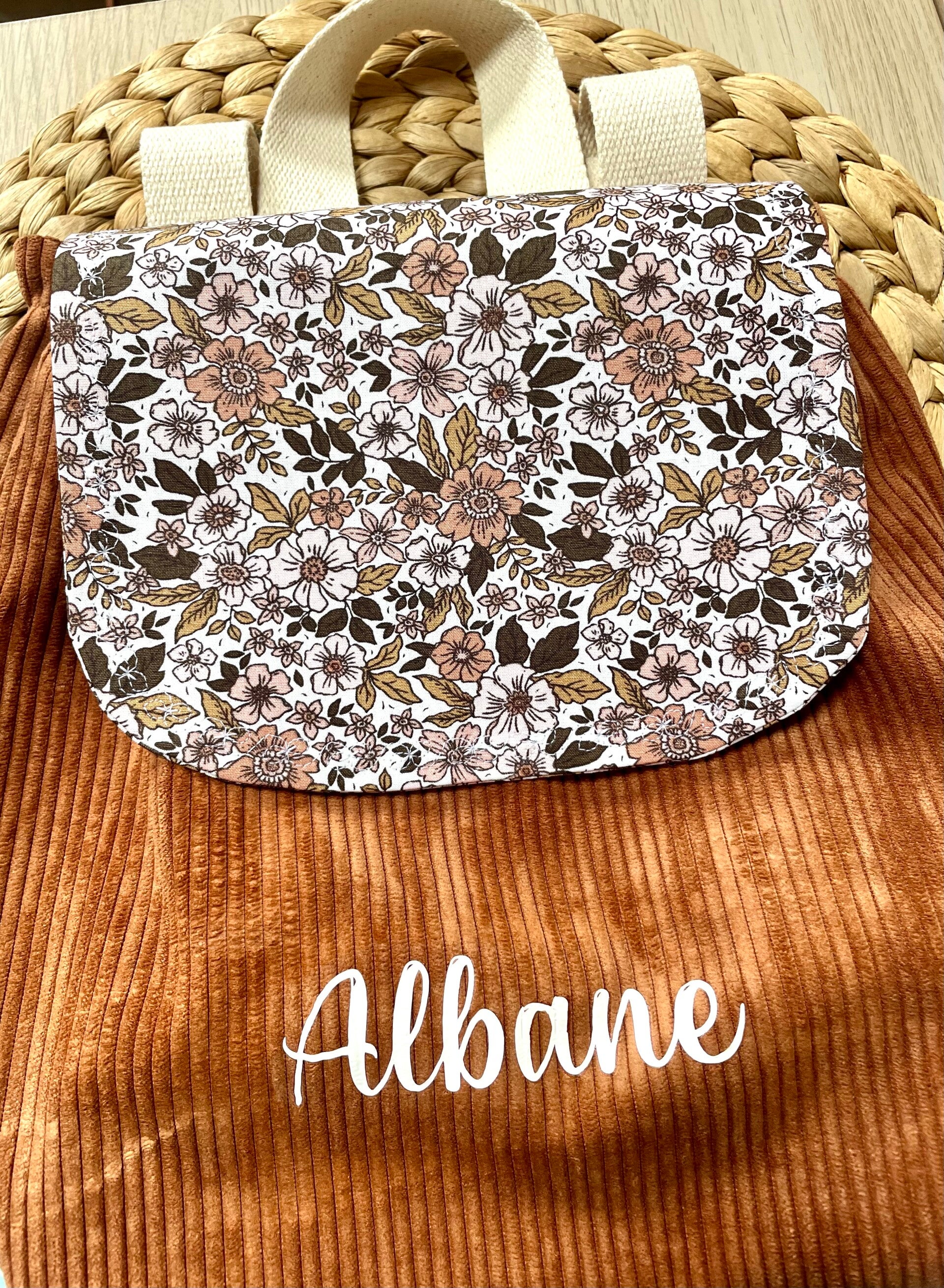 Sac à dos enfant en velours et doublé en coton pour la crèche ou l'école maternelle.