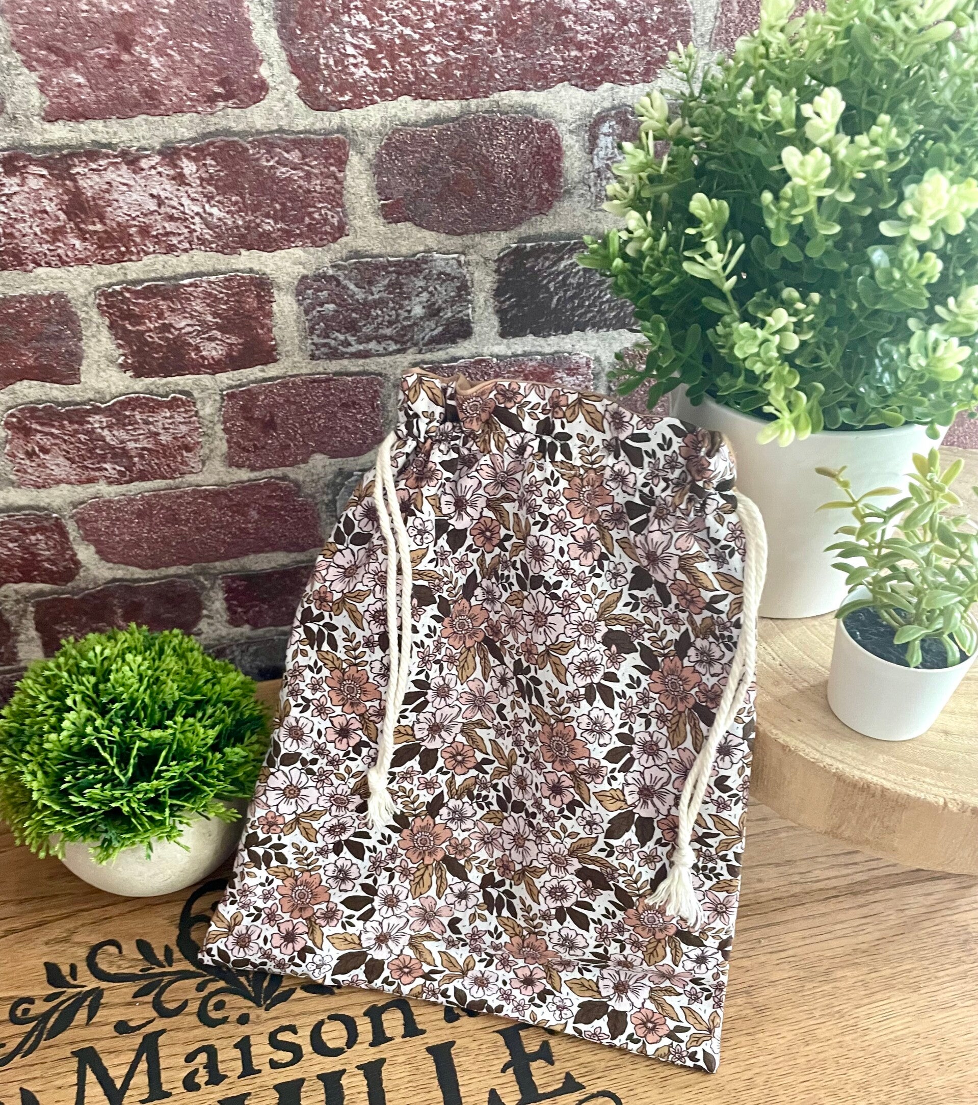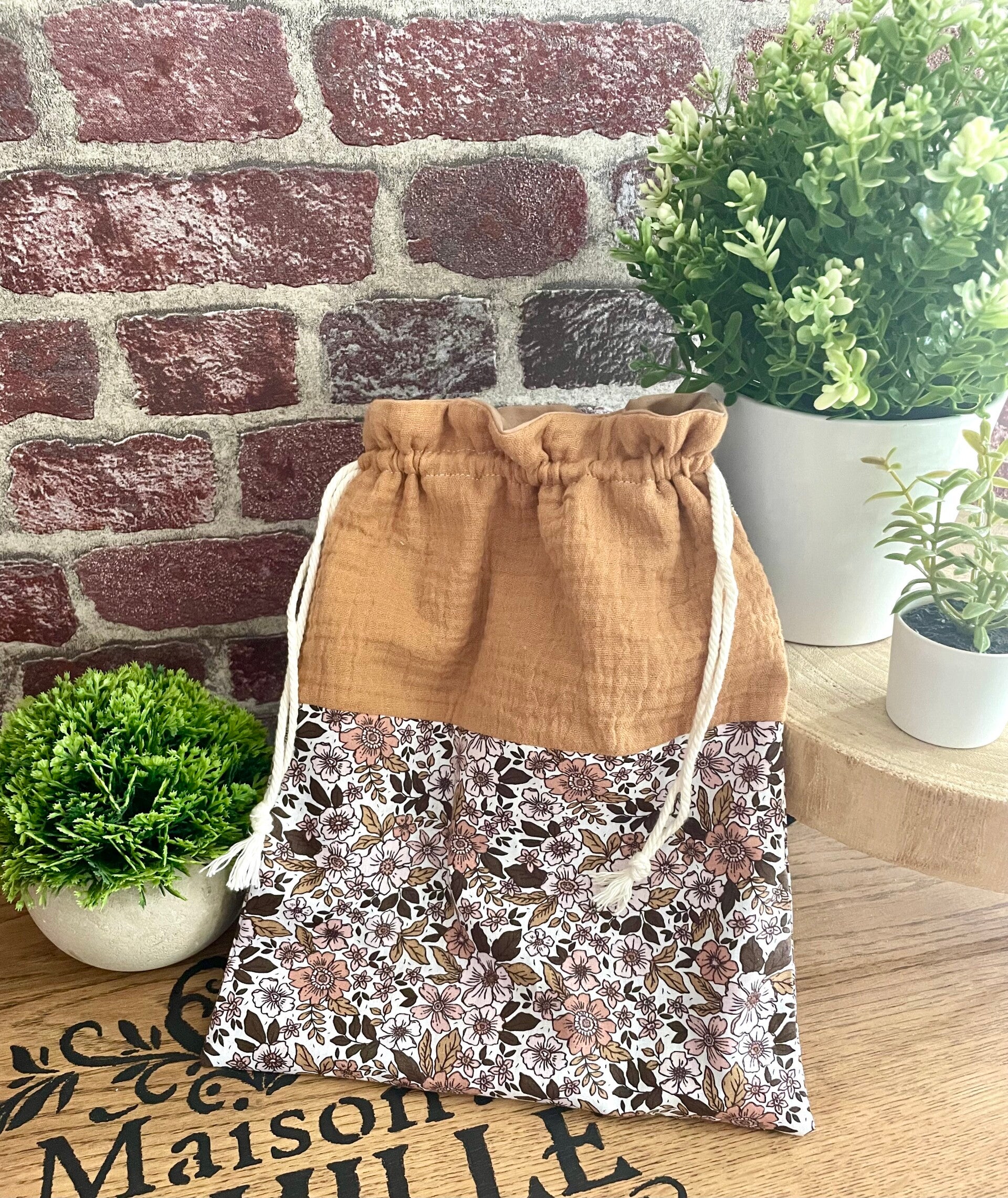 Pochon personnalisé fleuri camel