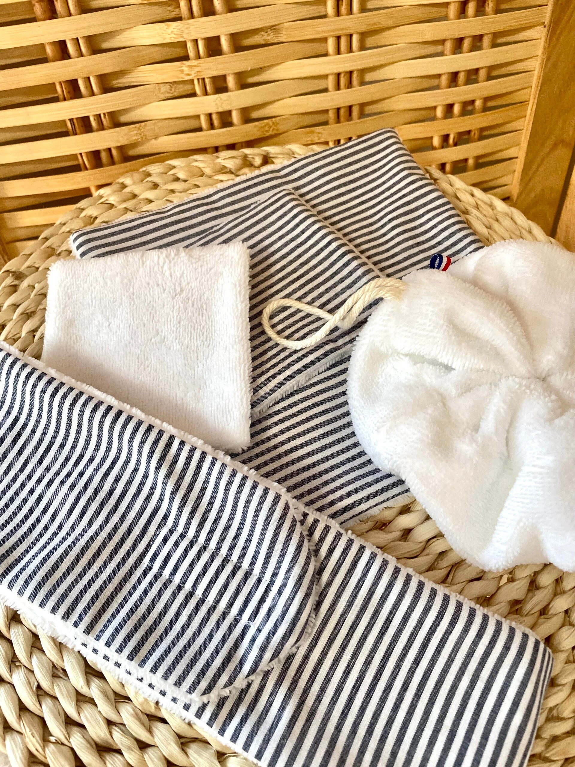 Optez pour ce kit zéro déchets dans la salle de bain cousu dans des tissus éponge très doux en bambou certifiés Oeko-tex de qualité!
