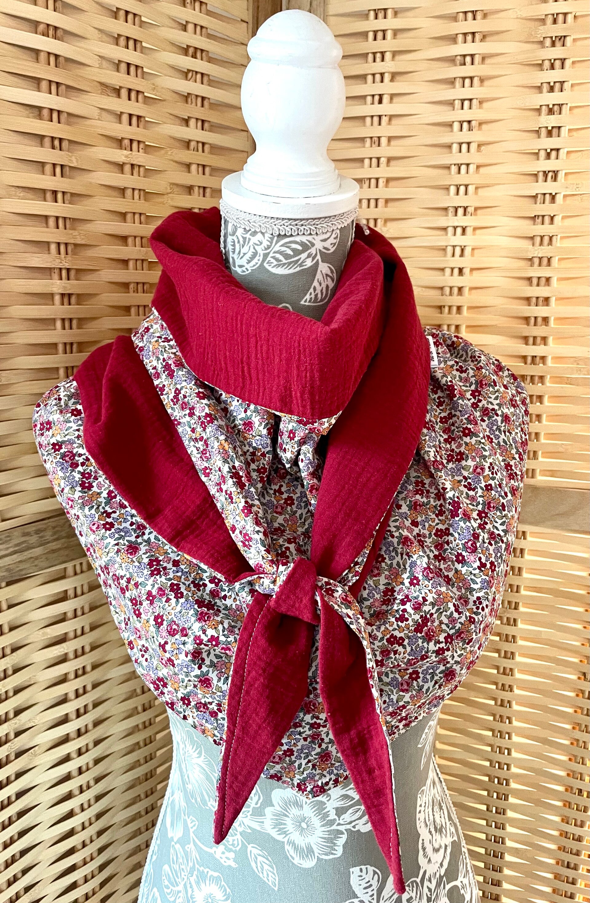 Chèche léger et idéal à porter en toutes saisons! Il est en forme triangle et peut se porter des deux côtés selon l’effet souhaité: plus coloré ou plus simple du côté uni.