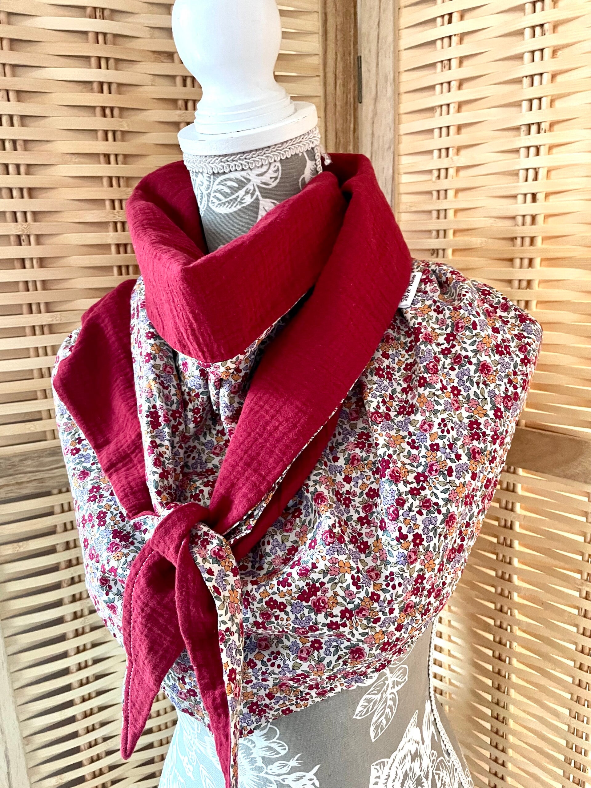 Chèche femme en coton imprimé fleuri doublure bordeaux