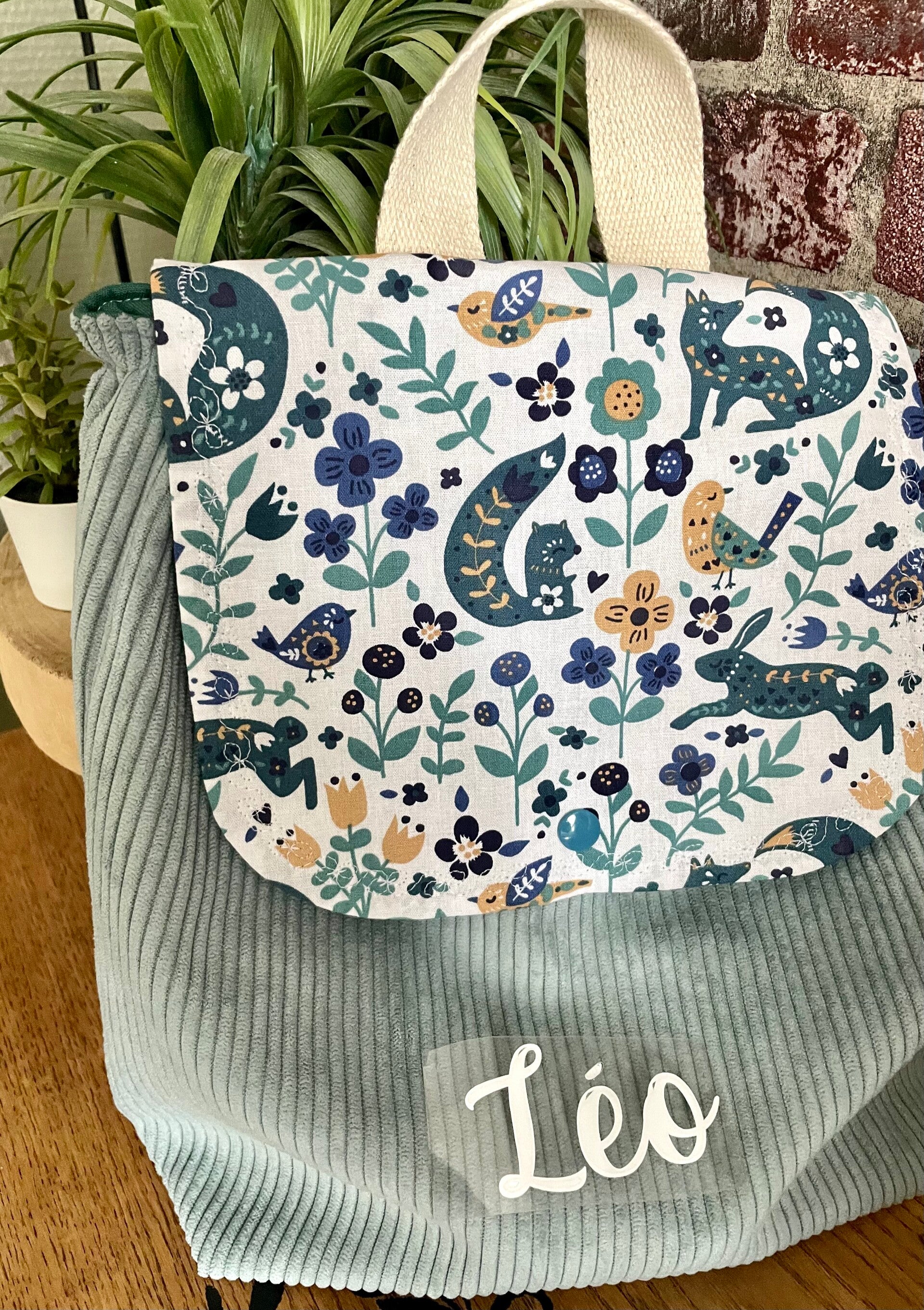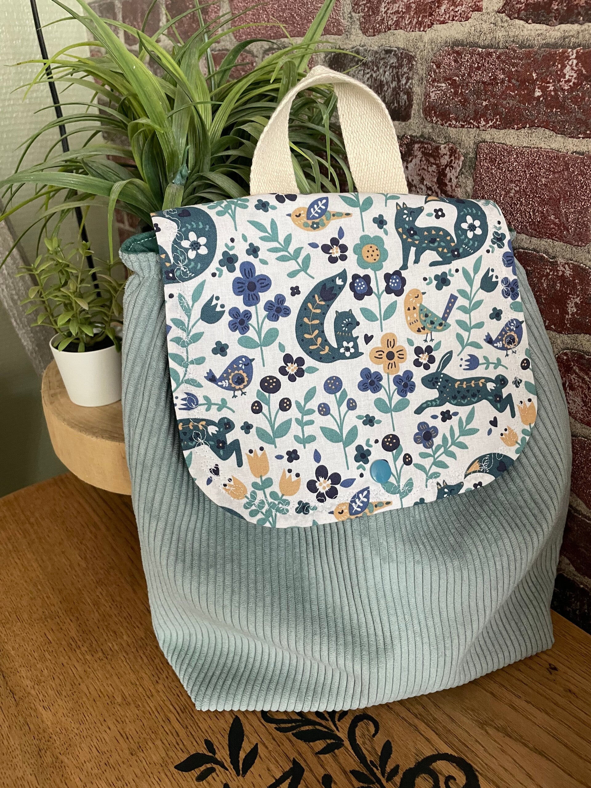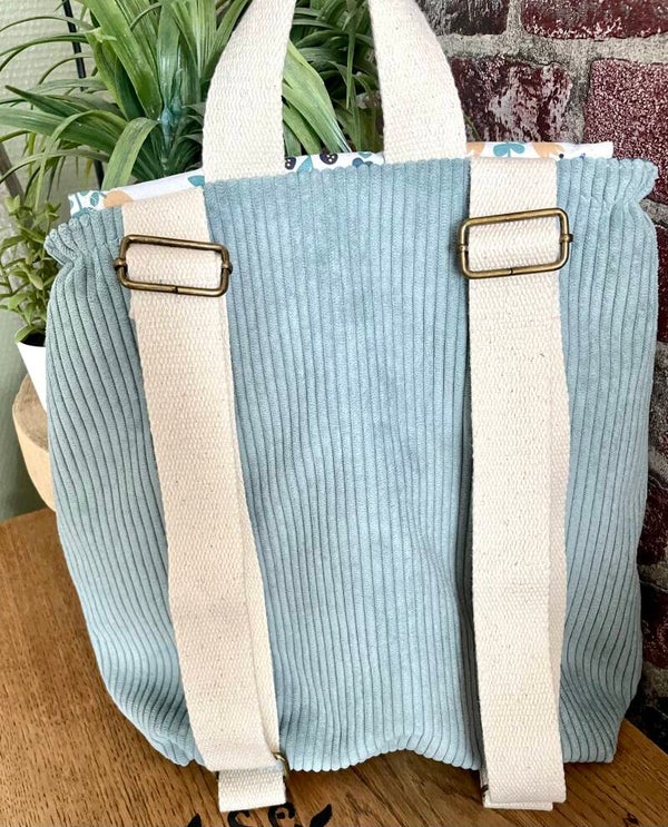 Sac à dos velours bleu céladon