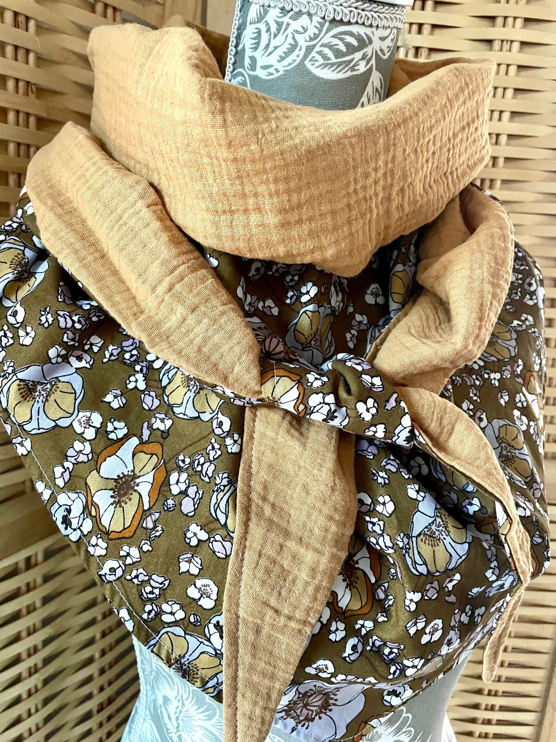 Chèche femme en coton imprimé fleuri camel doublure camel