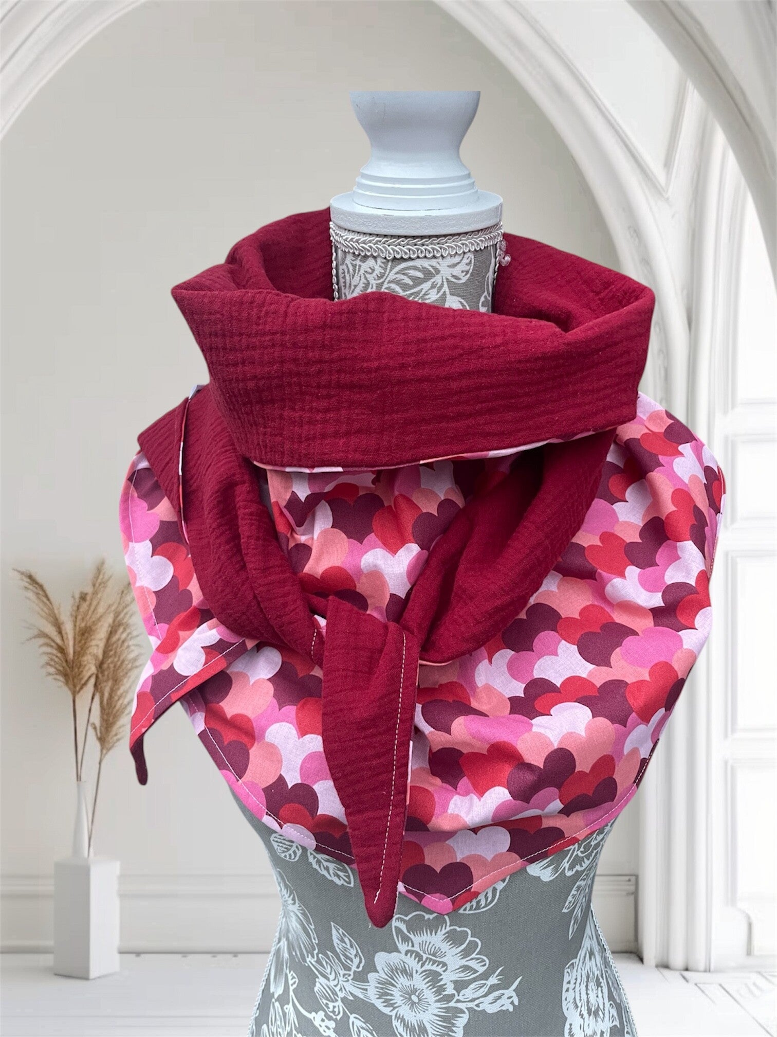 Chèche femme en coton coeurs bordeaux
