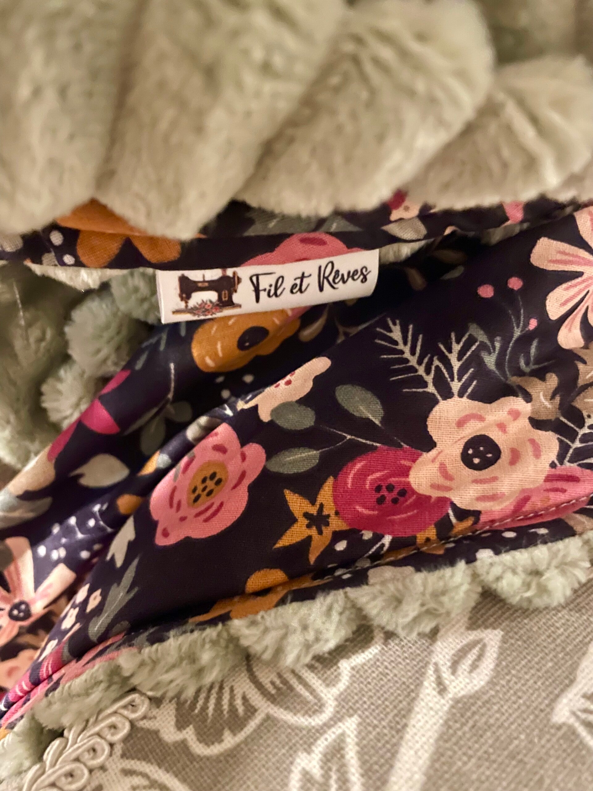 Chèche femme en coton fleuri doublure côtelé vert d’eau