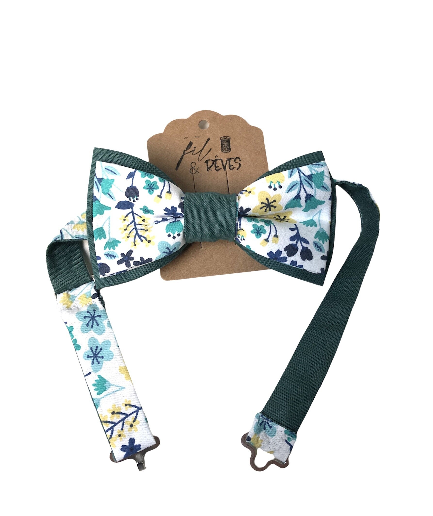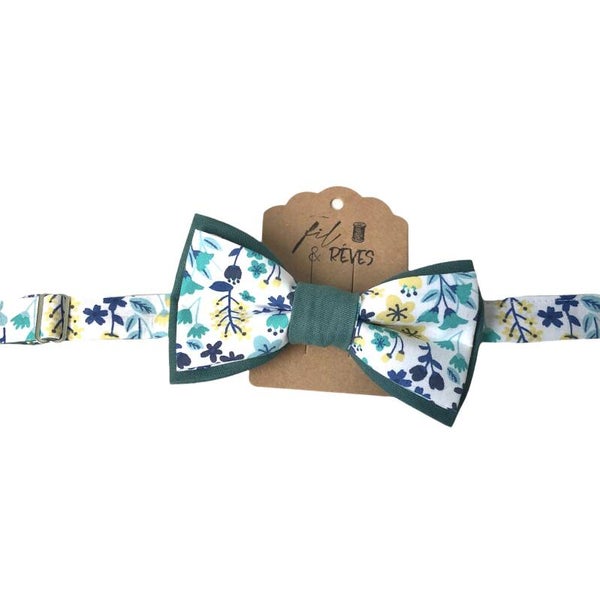 Noeud papillon réglable en tissu 100% coton, attache en métal.