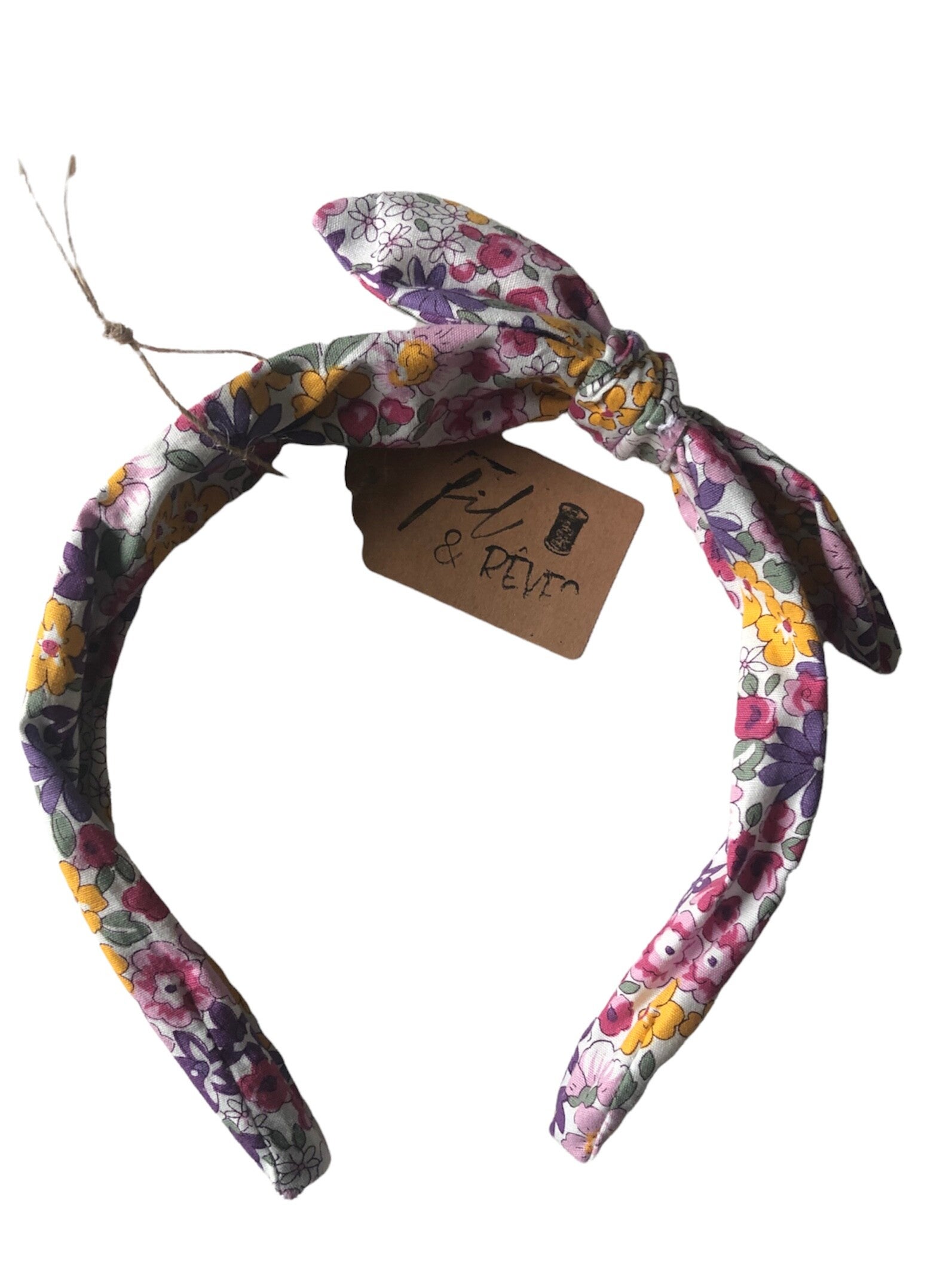 Serre-tête en tissu imprimé fleuri lilas / jaune