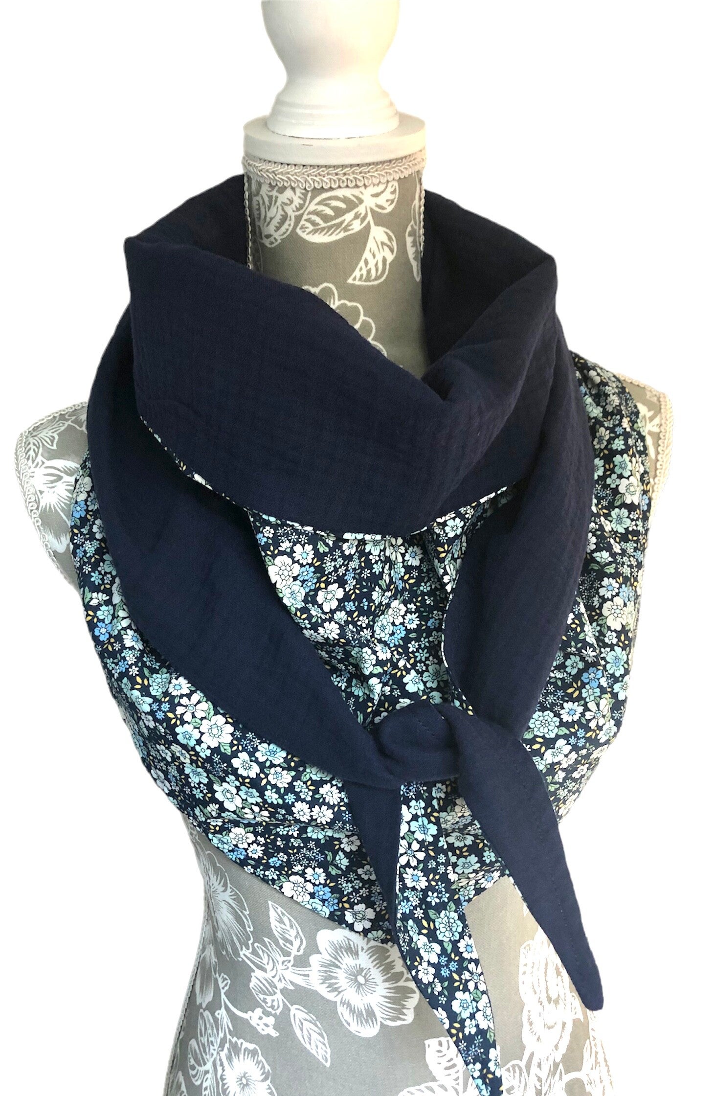 Chèche léger et idéal à porter en toutes saisons! Il est en forme triangle et peut se porter des deux côtés selon l’effet souhaité: plus coloré ou plus simple du côté uni.