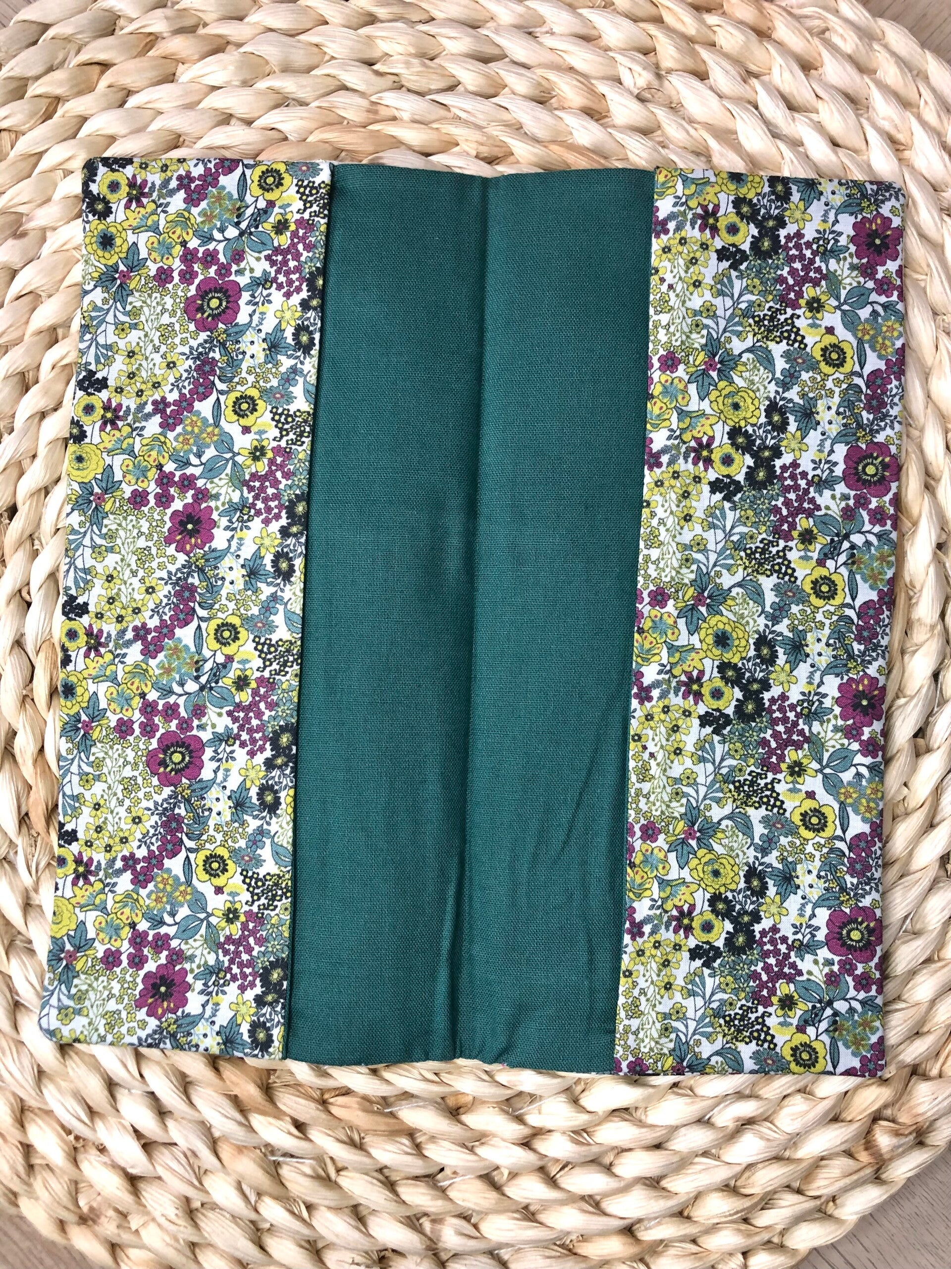 Pochette livret de famille fleurie tons kaki / prune