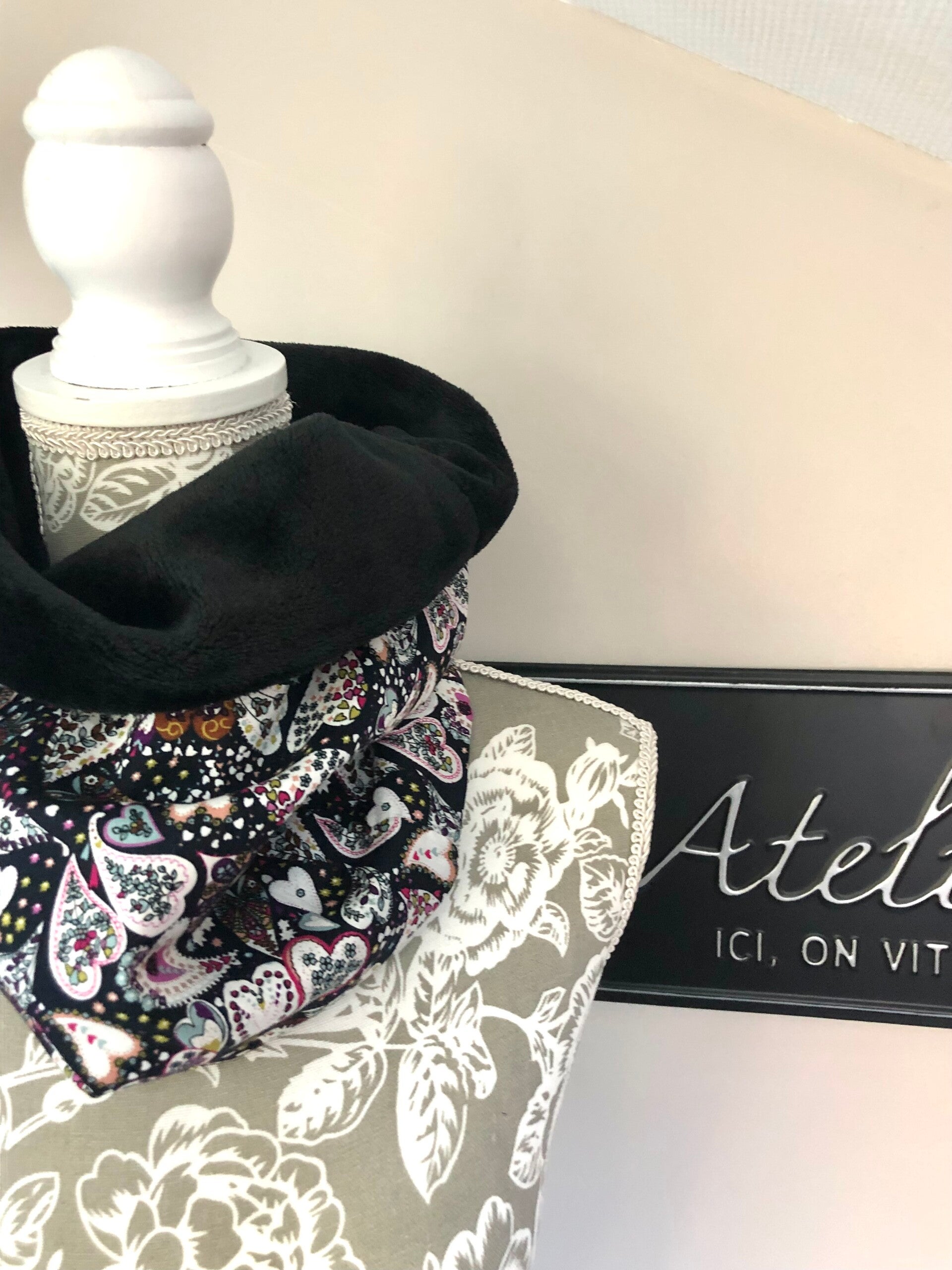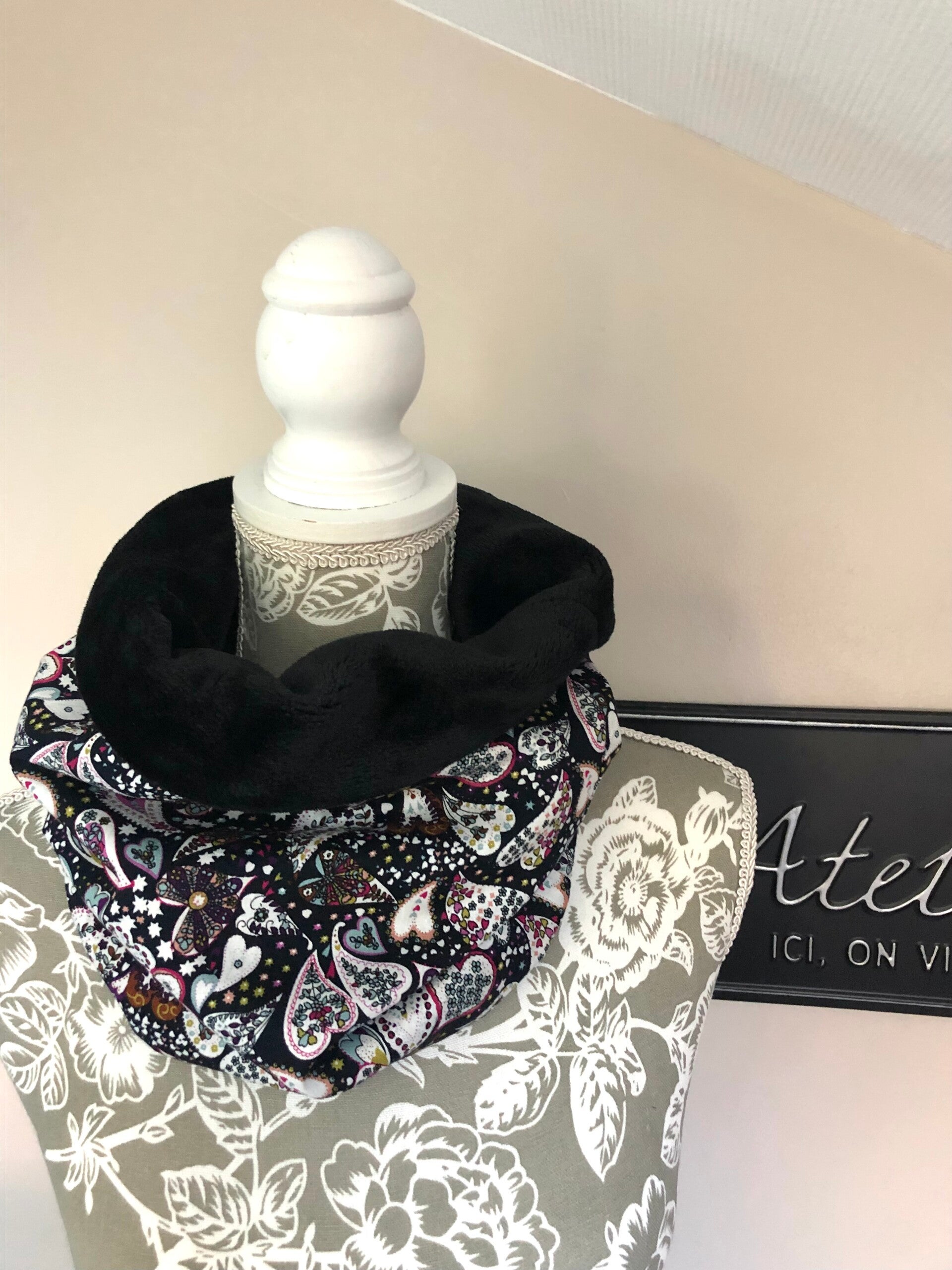 Snood imprimé cœur doublure noire