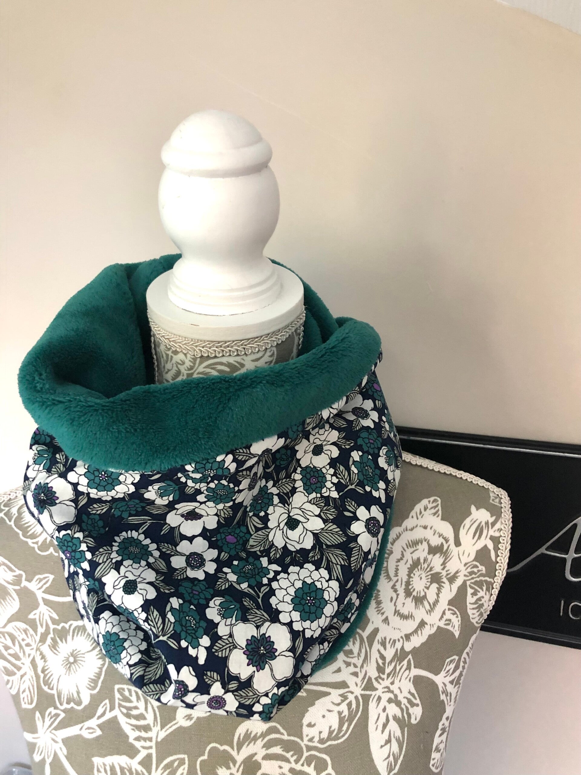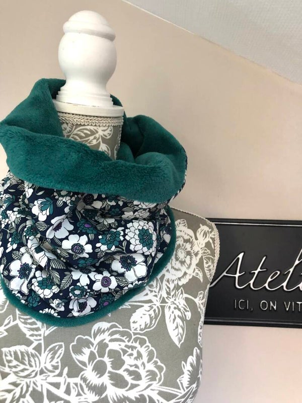 Snood fleuri doublure pétrole