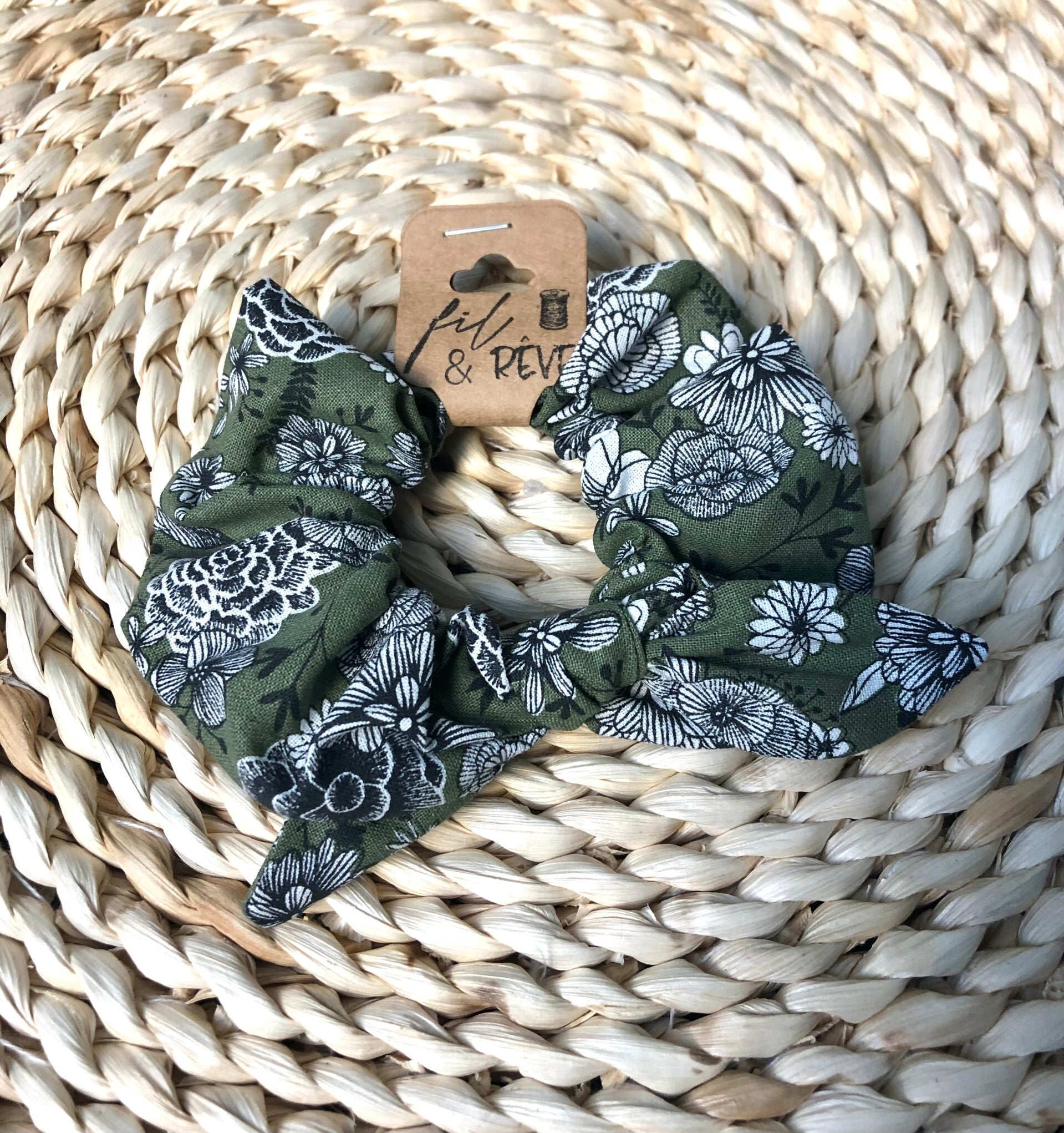 Foulchie doux imprimé fleurs kaki