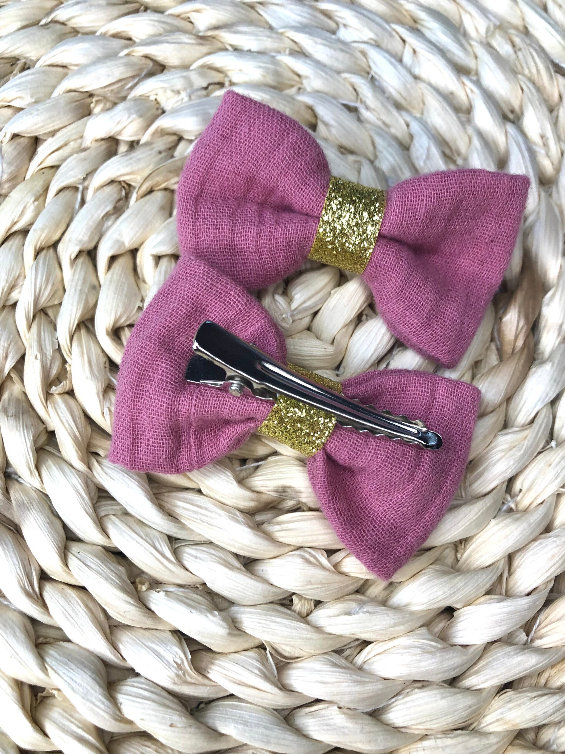 Barrette en tissu vieux rose