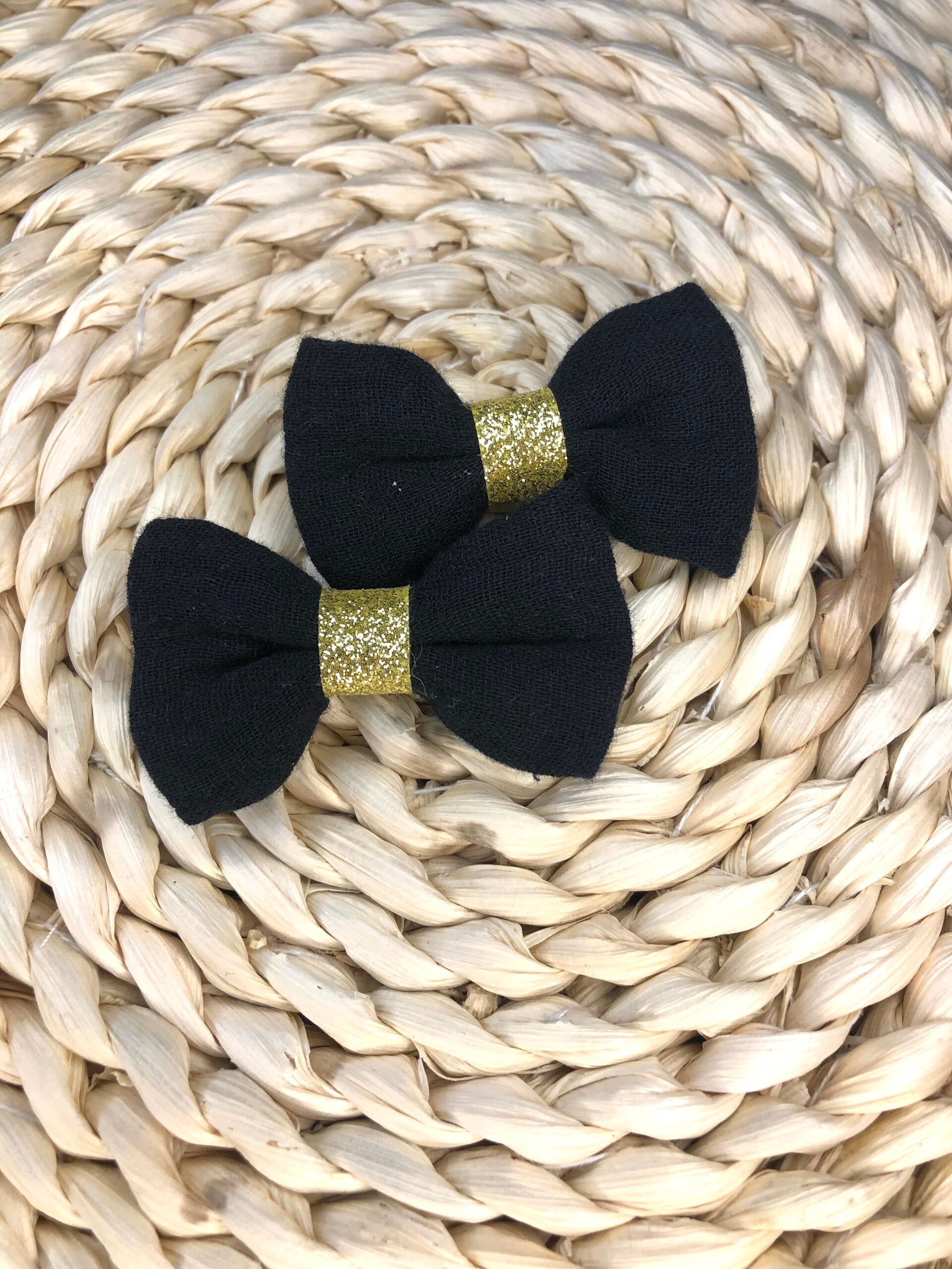 Barrette en double gaze de coton d'environ 3,5 x 6,5cm qui s'attache avec une pince crocodile d'environ 4 cm de long.