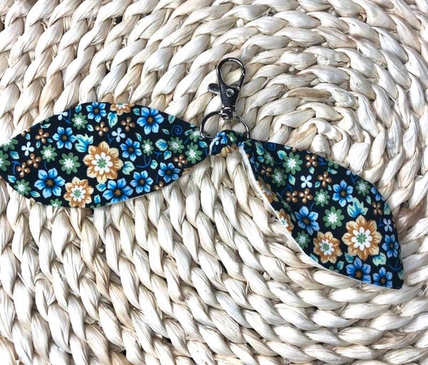 Porte clé en tissu 100 % coton et double gaze écru à pois dorés avec un mousqueton pratique pour l'attacher aux clés facilement.