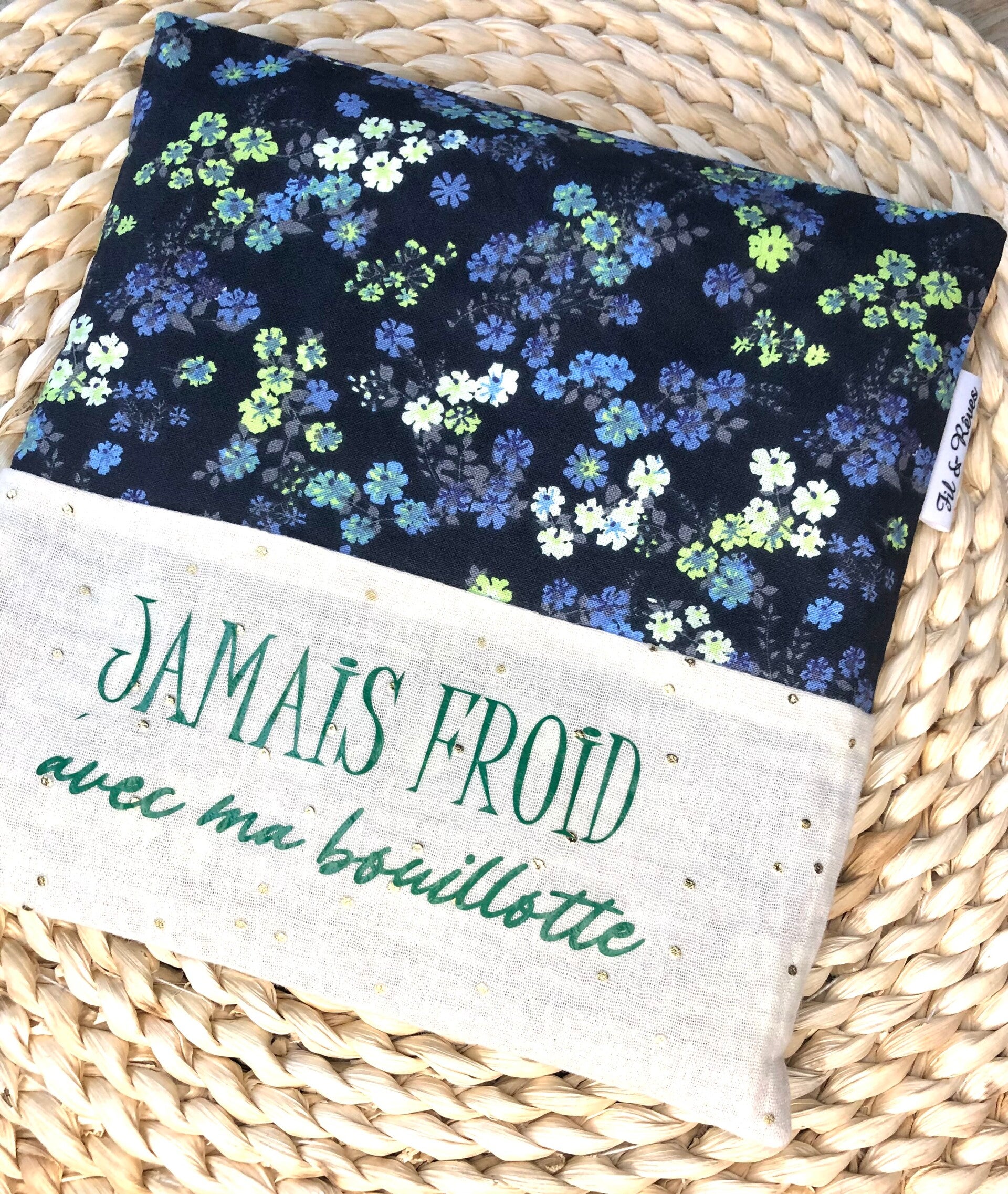 Bouillotte sèche bleu nuit et vert