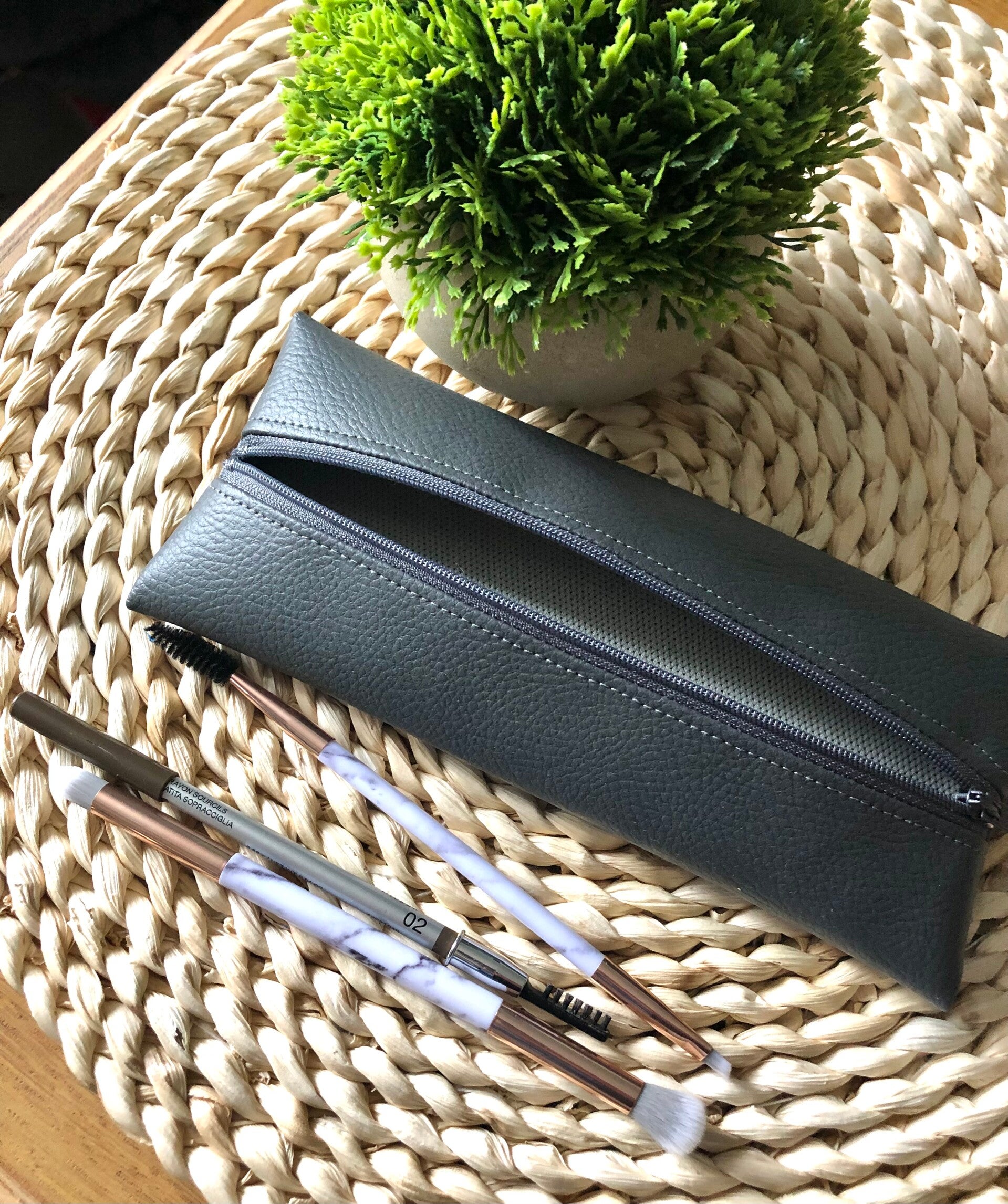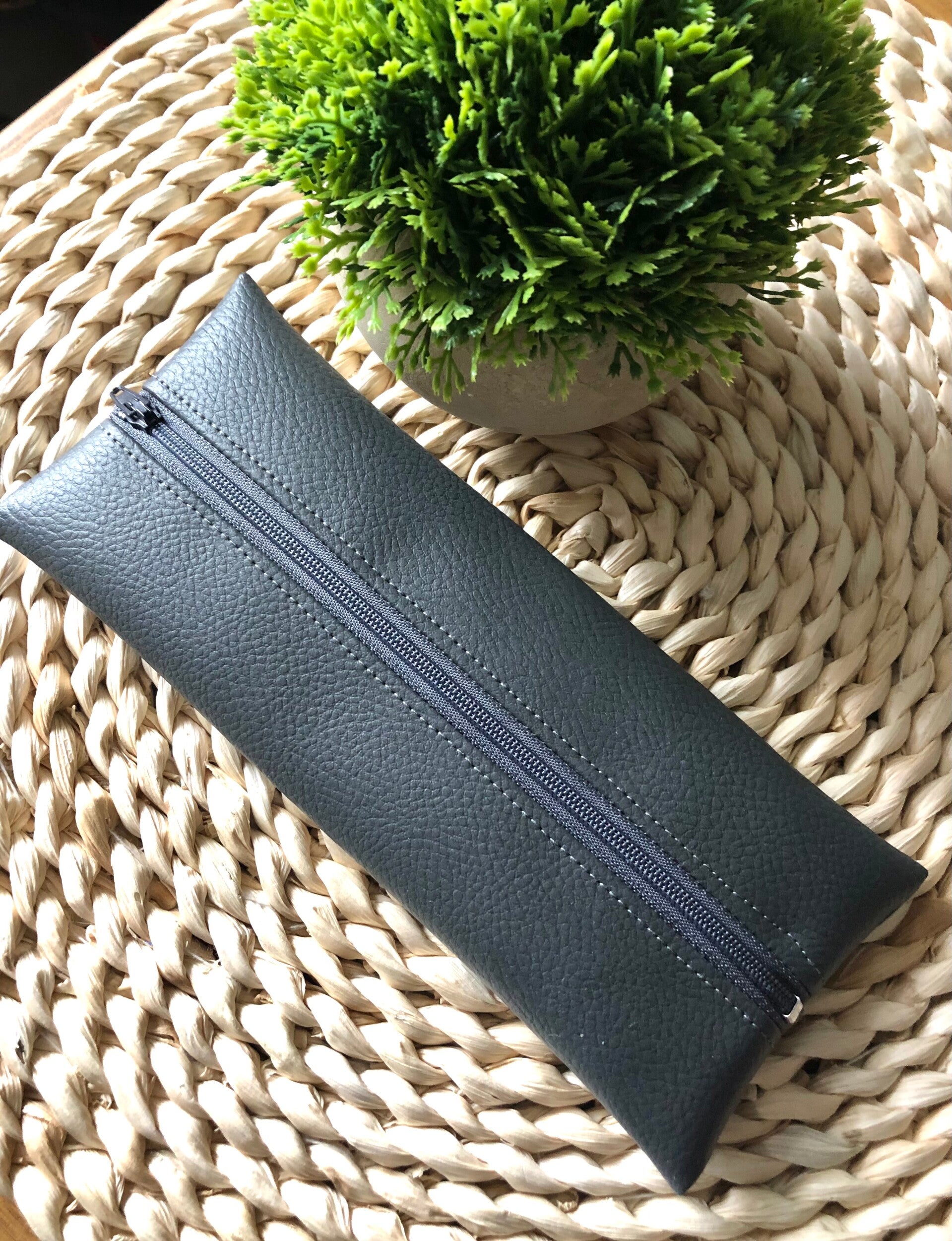 Trousse simili cuir gris anthracite