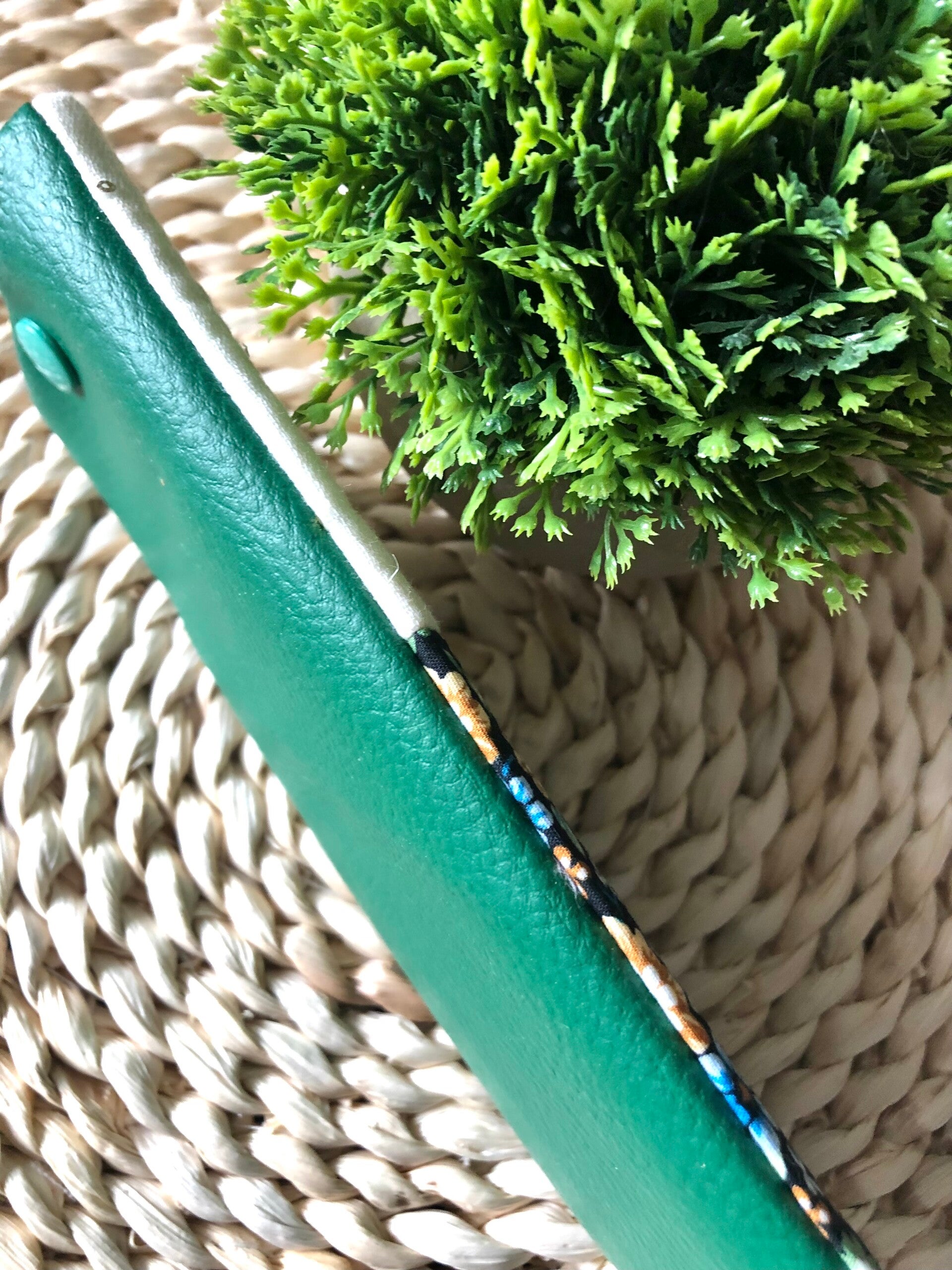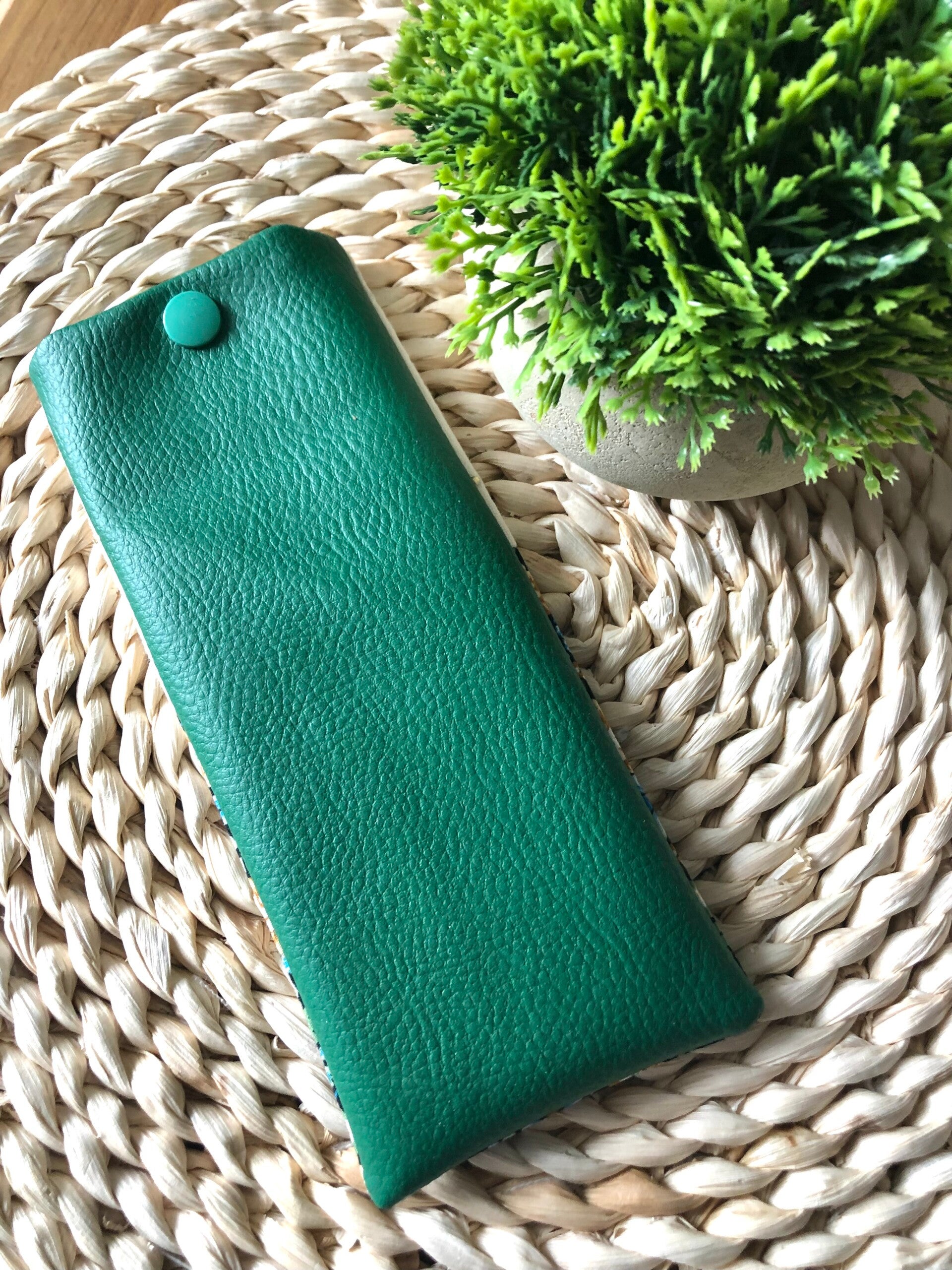 Etui à lunettes petites fleurs vert/bleu/orange simili cuir vert