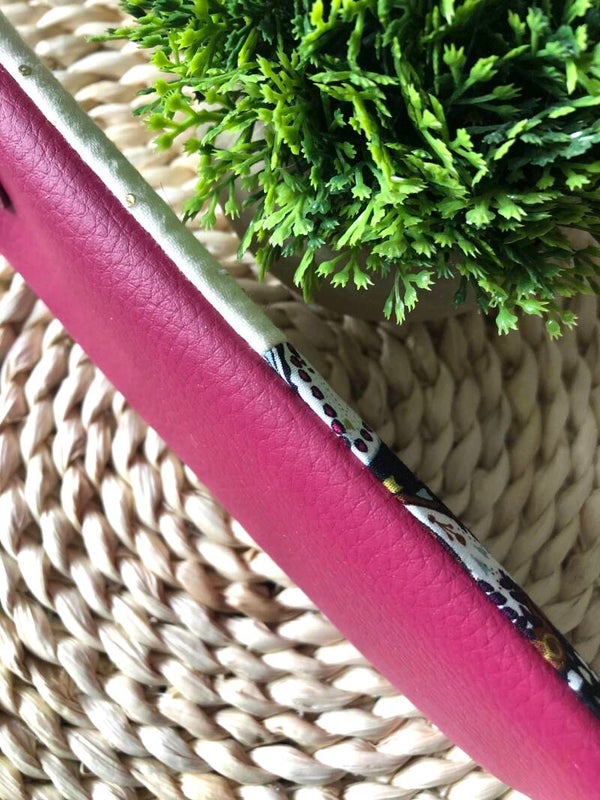 Etui à lunettes en coton doublé et verso simili cuir. il se ferme par un bouton pression en plastique.